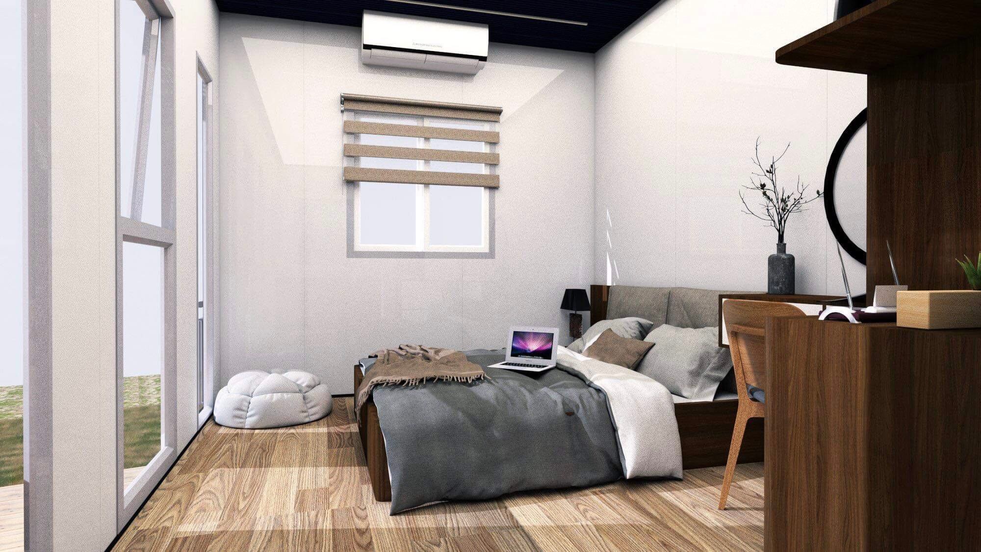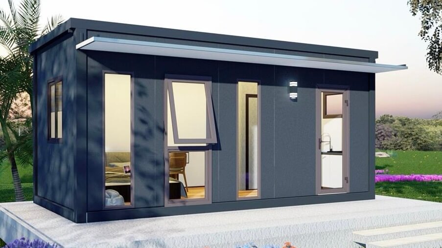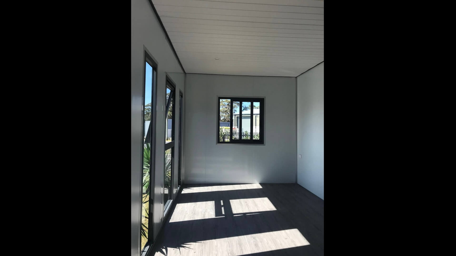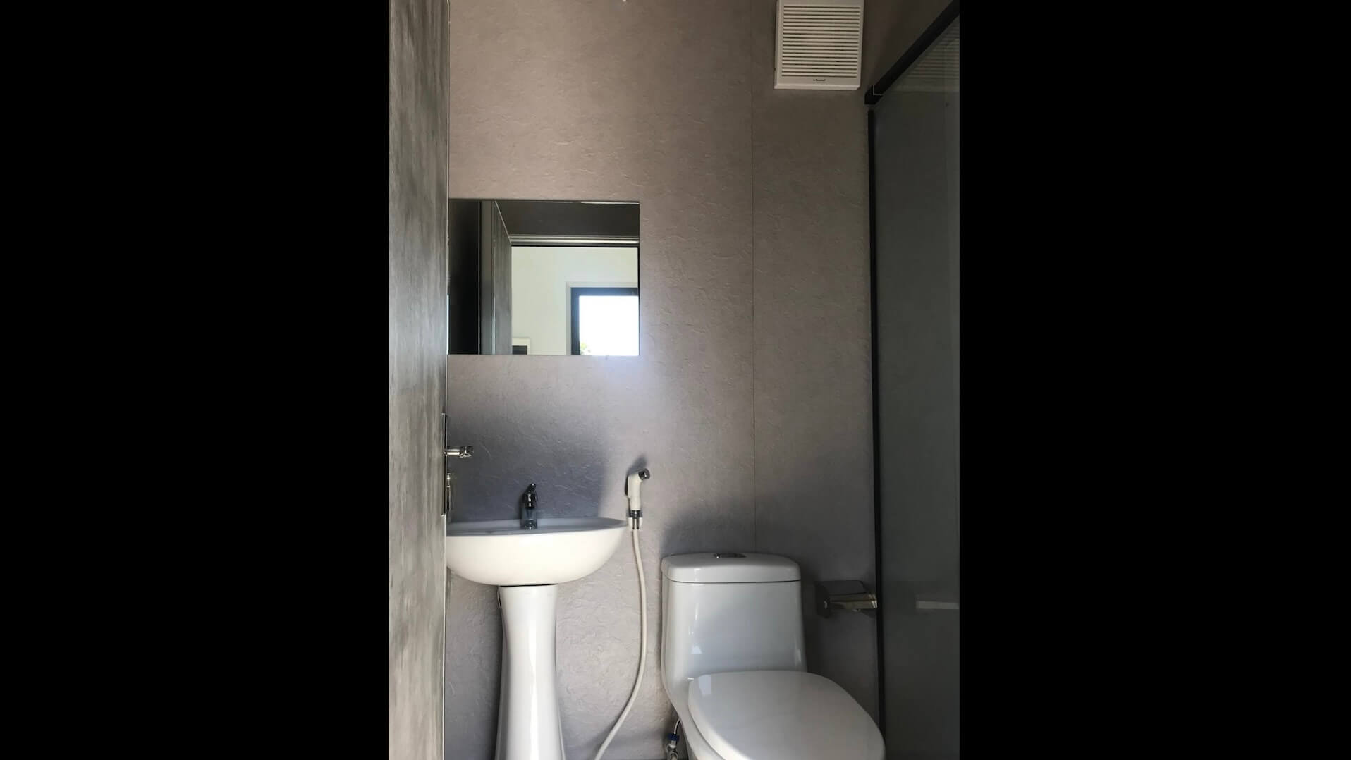 Our standard modular unit offers a stylish living space, complete with a sleek bathroom pod.